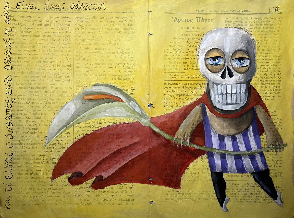 Έργο ζωγραφισμένο με τέμπερα πάνω σε σελίδα εφημερίδας του 1943 /42χ30/ 2022.