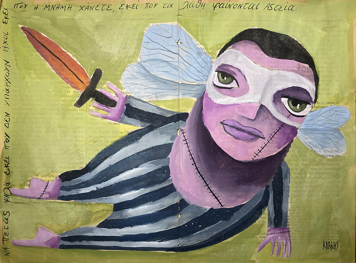 Έργο ζωγραφισμένο με τέμπερα πάνω σε σελίδα εφημερίδας του 1943 /42χ30/ 2022.