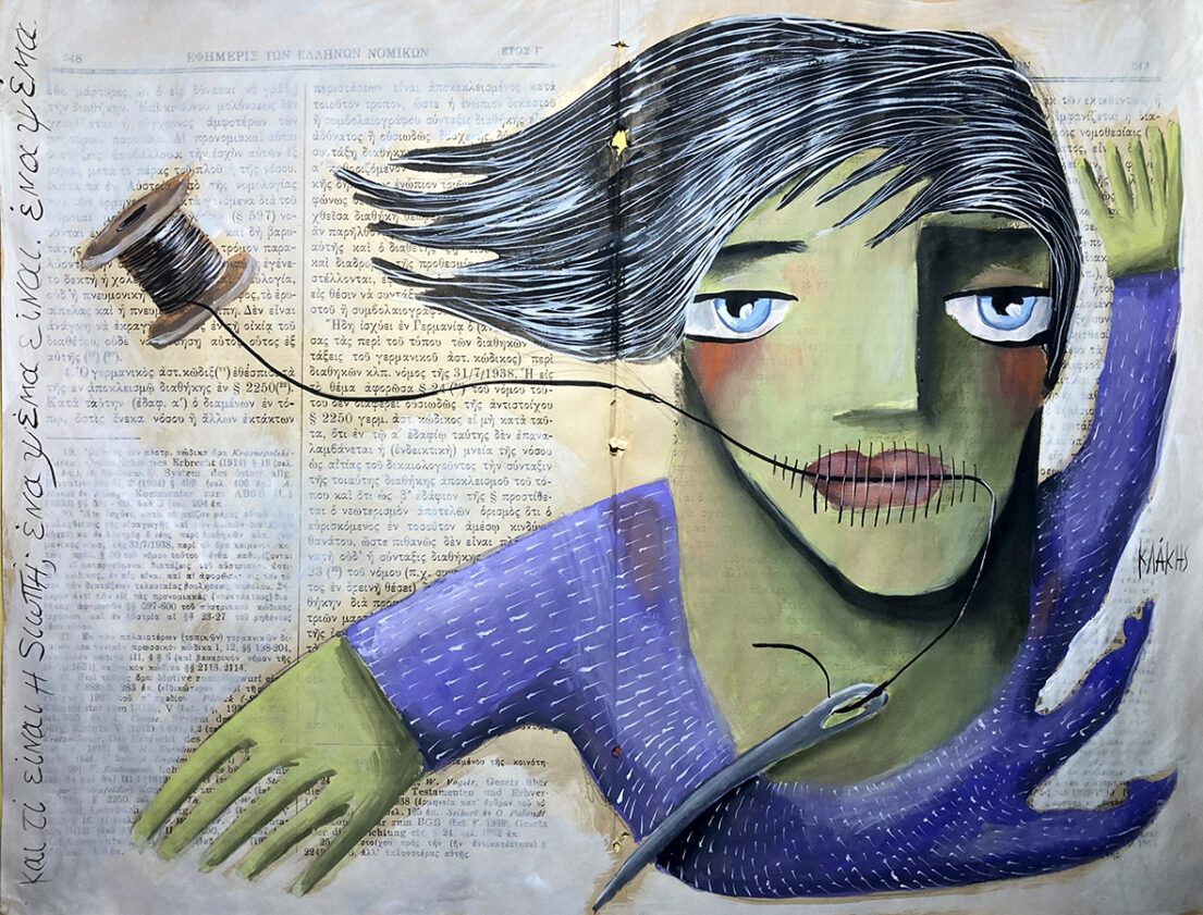 Έργο ζωγραφισμένο με τέμπερα πάνω σε σελίδα εφημερίδας του 1943 /42χ30/ 2022.