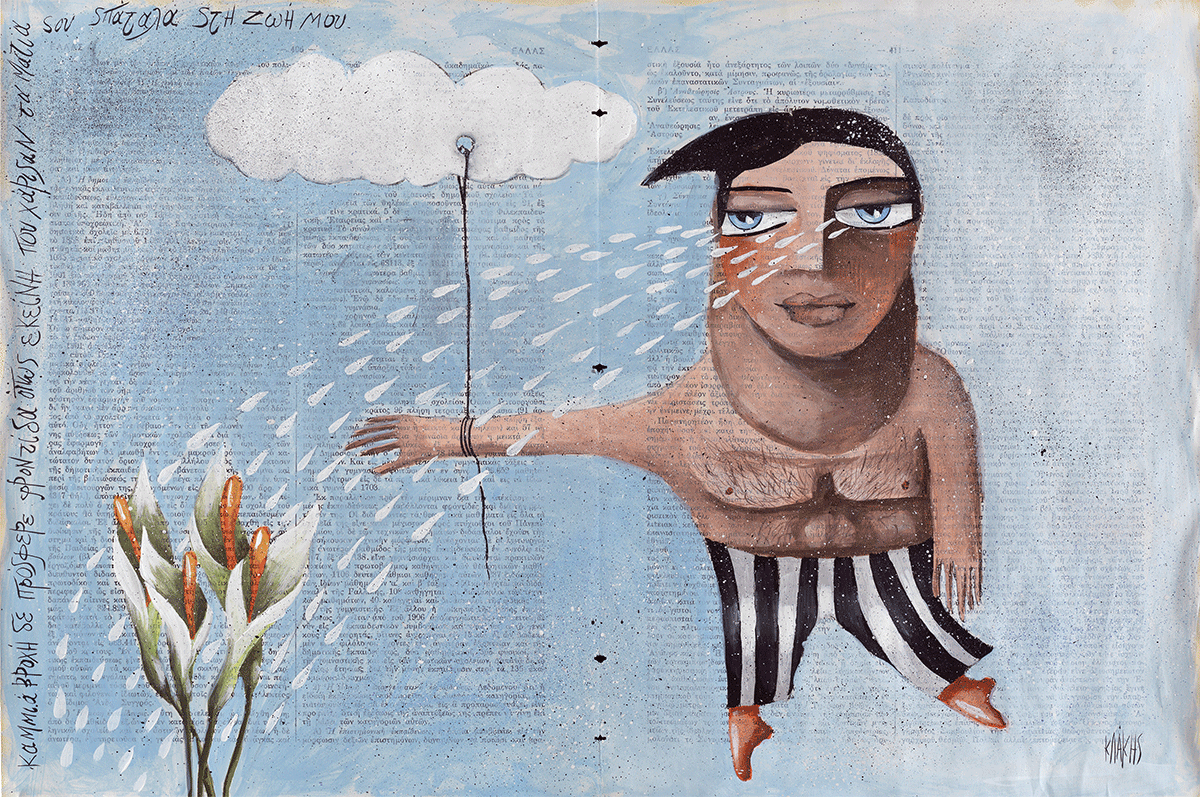 Έργο ζωγραφισμένο με τέμπερα πάνω σε σελίδα εγκυκλοπαίδειας του 1936.