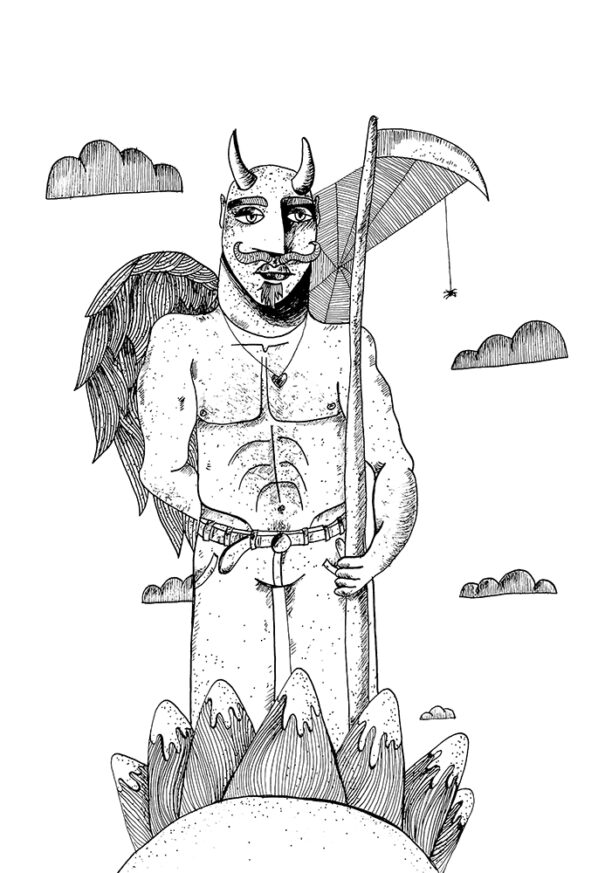 Ο Πάντης. Εικονογράφηση για το βιβλίο του Γιάννη Ηλιάδη: «Η θεία Αλεξάνδρα και άλλά αφηγήματα» Μελάνι σε χαρτί 30χ40 / 2022