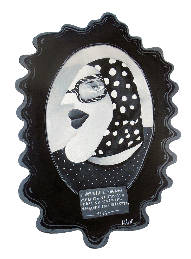 Έργο από τη σειρά «Το Σόι μου» που παρουσιάστηκε στην Cheap Art Θεσσαλονίκης το 2014, (ζωγραφική πάνω σε κομμένο ξύλο).
