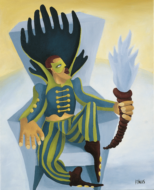 Έργο από την έκθεση «Ηδονολάτρες και συναφή ξωτικά», Gallery Κιβωτός, Αθήνα 2000.