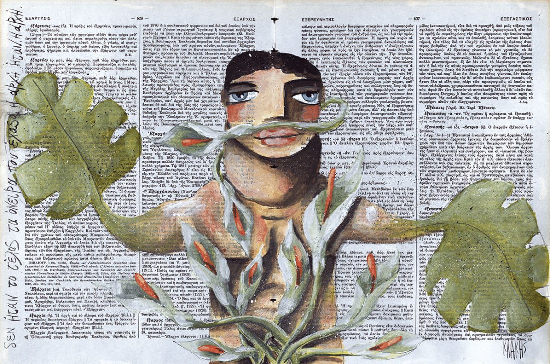 Έργο ζωγραφισμένο με τέμπερα πάνω σε σελίδα εγκυκλοπαίδειας του 1936.