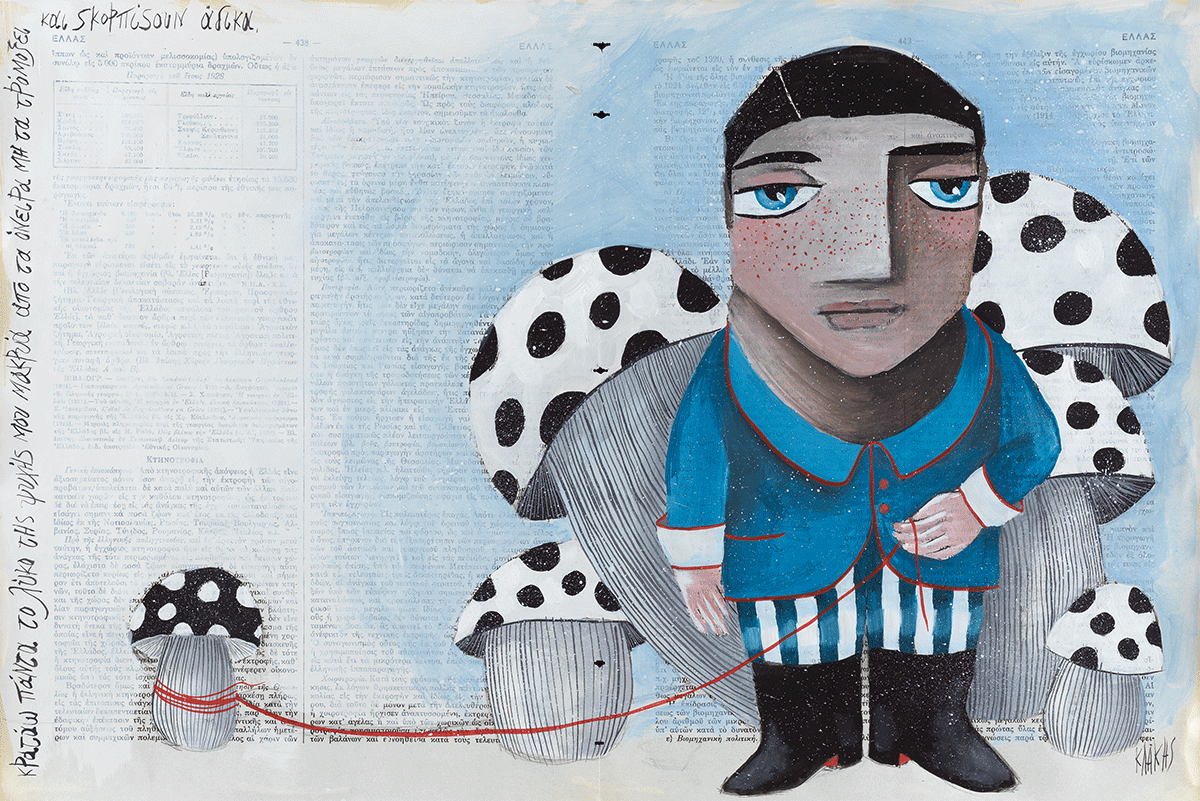 Έργο ζωγραφισμένο με τέμπερα πάνω σε σελίδα εγκυκλοπαίδειας του 1936.